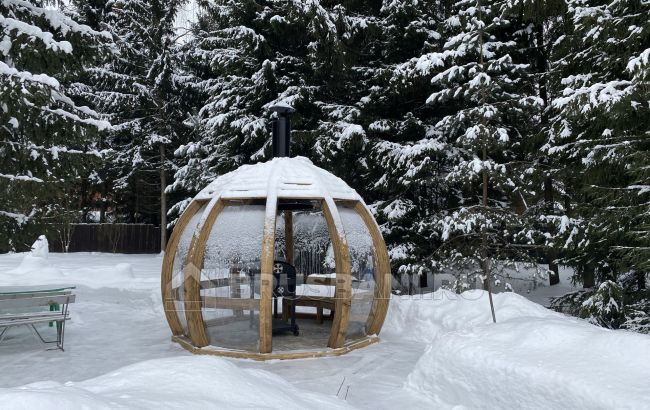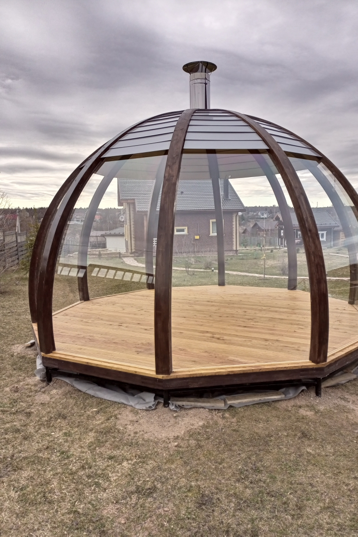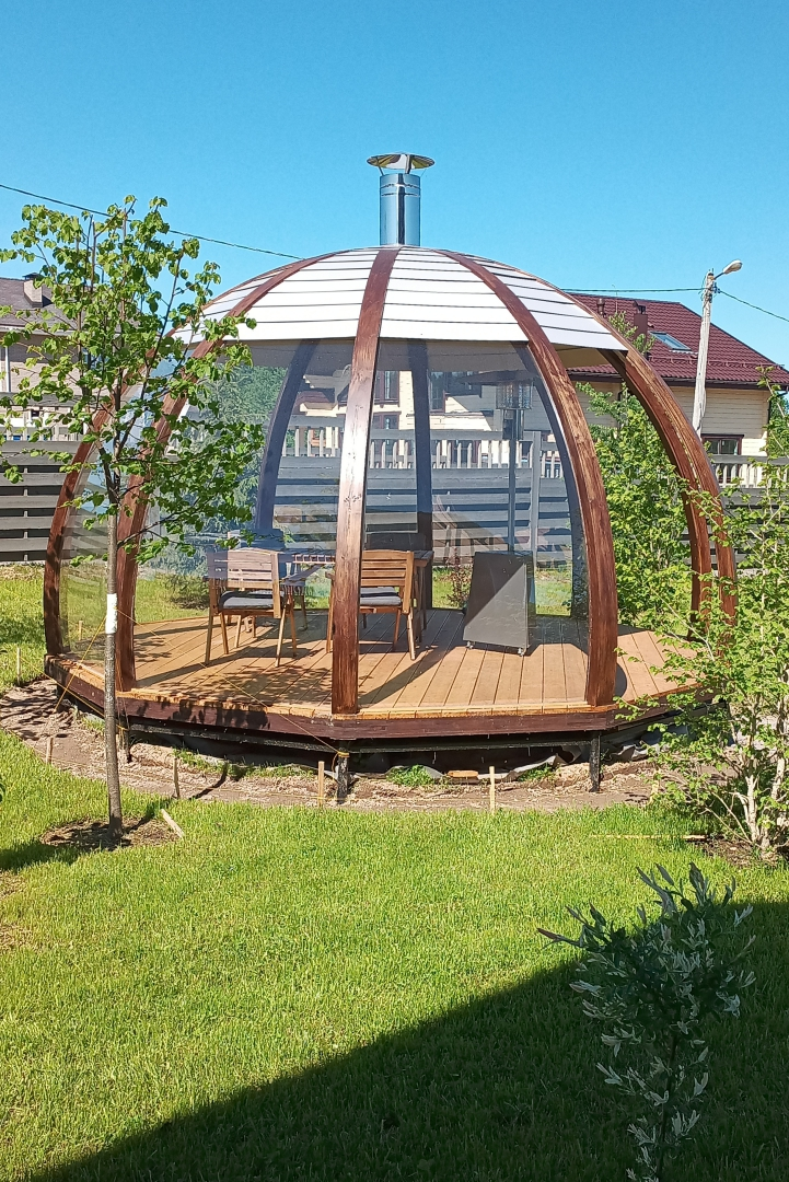 Современная беседка из дерева и стекла